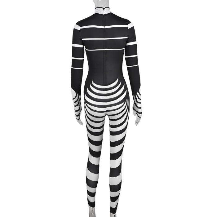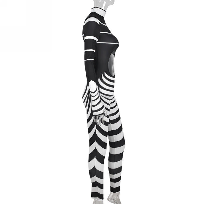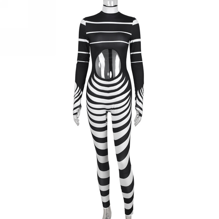 (Real Image)2022 Styles Women Sexy Spring&Winter TikTok&Instagram Styles Black&White Contrast Color Cut Out JumpsuitSKU: #CF59392-1