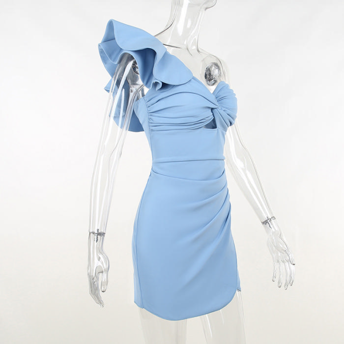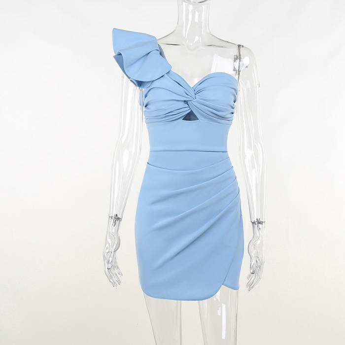 (Real Image)2022 Styles Women Sexy Spring&Winter TikTok&Instagram Styles Blue Cut Out Club DressSKU: #XF92704-1