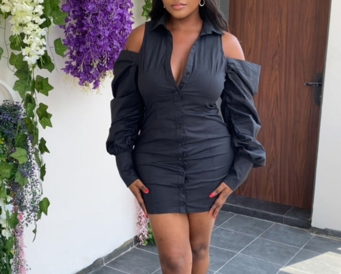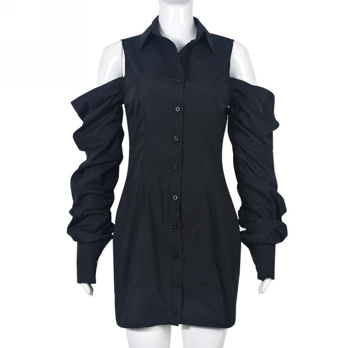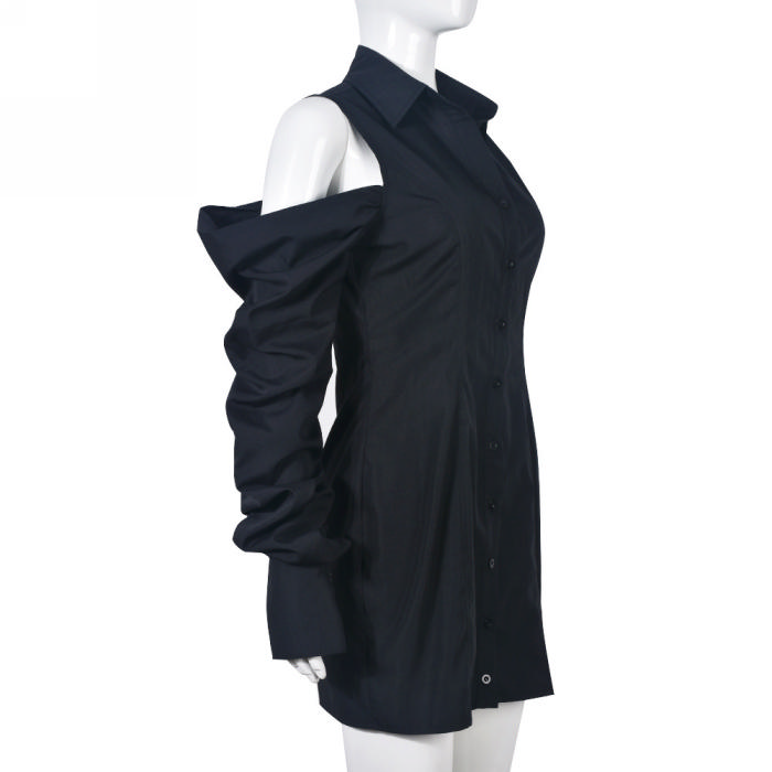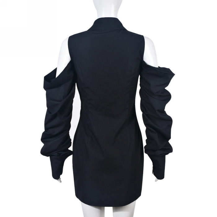 (Real Image)2022 Styles Women Sexy Spring&Winter TikTok&Instagram Styles Cold Shoulder Long Sleeve Halter Mini DressSKU: #CF75035-1