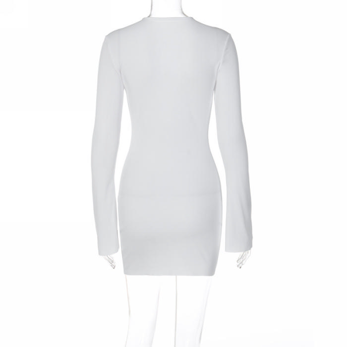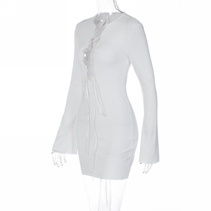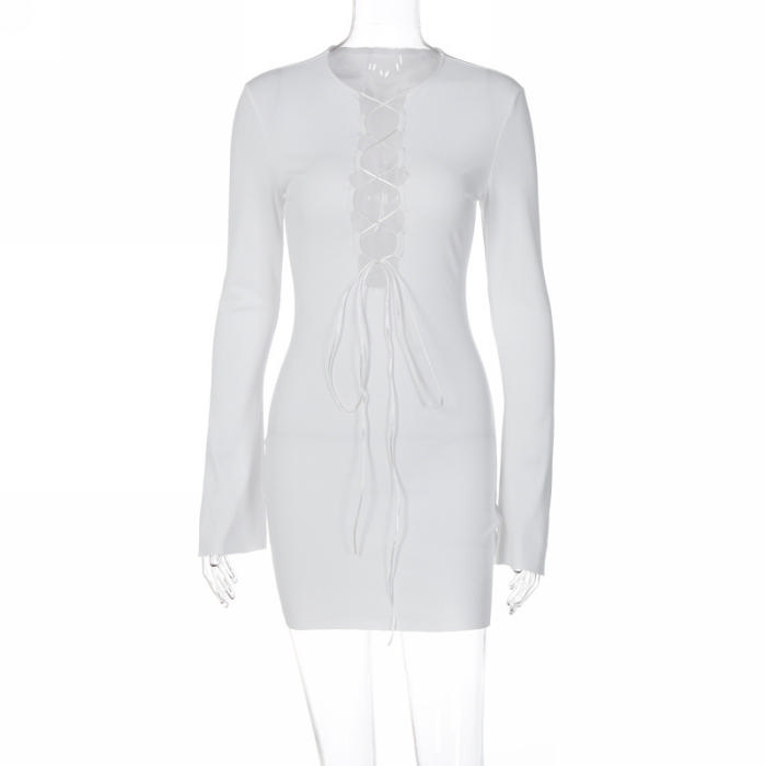 (Real Image)2022 Styles Women Sexy Spring&Winter TikTok&Instagram Styles Front Lace Up Long Sleeve Mini DressSKU: #CF81016-1