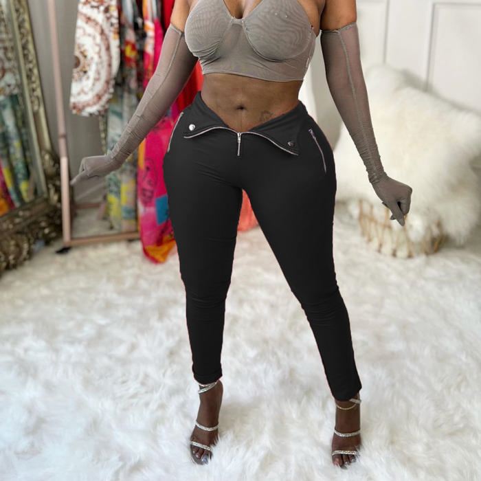 (Real Image)2022 Styles Women Sexy Spring&Winter TikTok&Instagram Styles Front Zipper Long PantsSKU: #CF75019-1