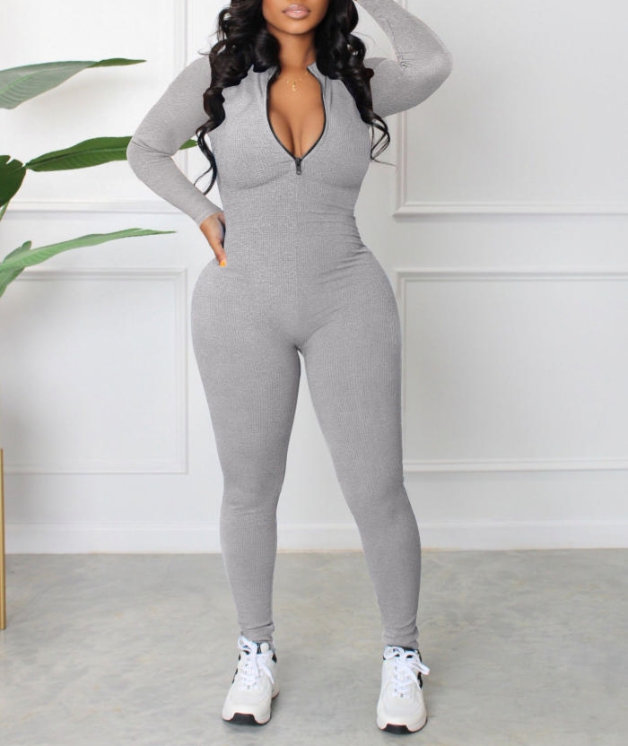 (Real Image)2022 Styles Women Sexy Spring&Winter TikTok&Instagram Styles Front Zipper Long Sleeve JumpsuitSKU: #CF79022-3