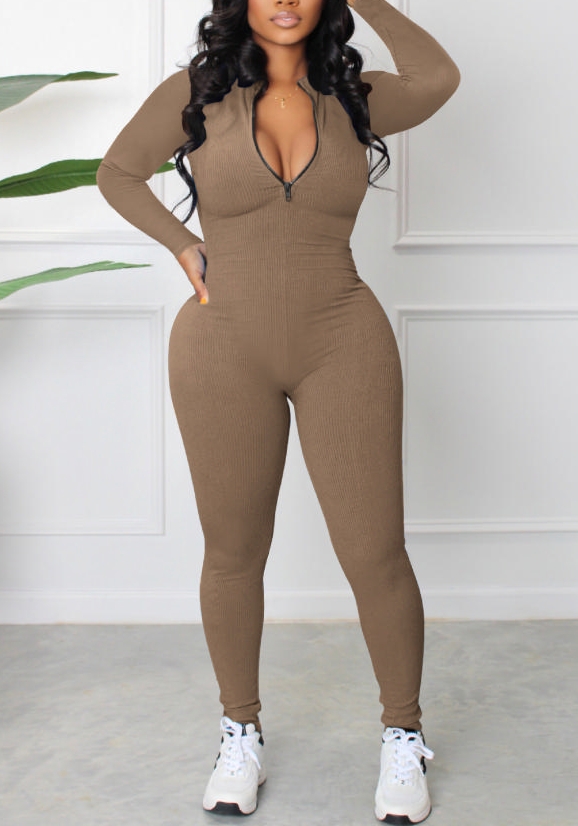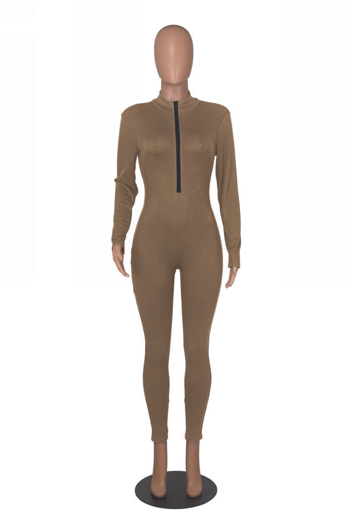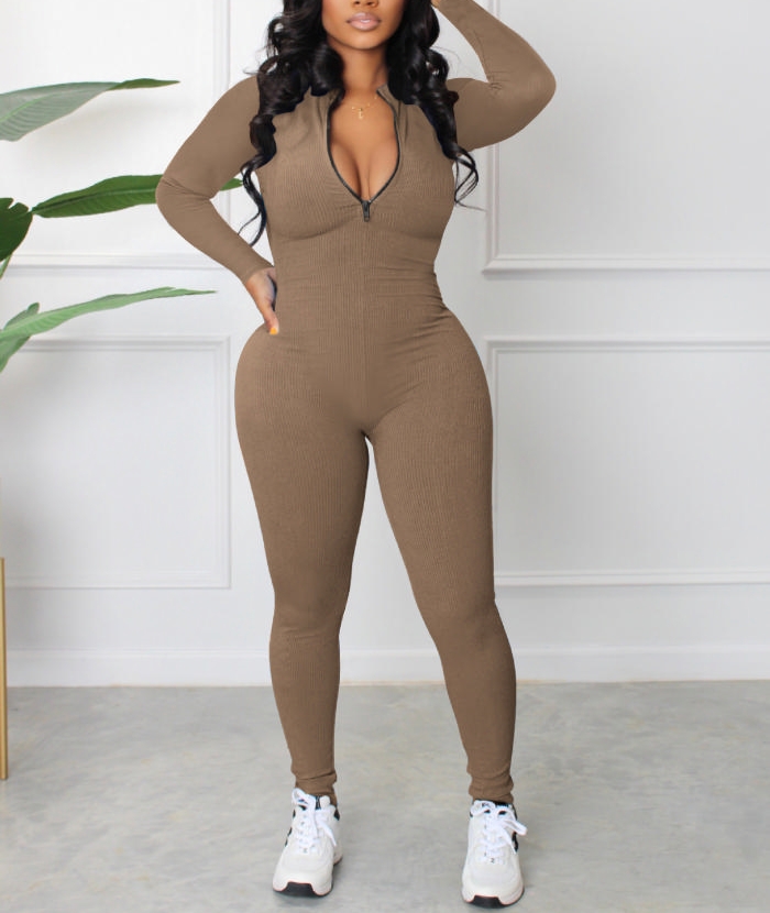 (Real Image)2022 Styles Women Sexy Spring&Winter TikTok&Instagram Styles Front Zipper Long Sleeve JumpsuitSKU: #CF79022-2