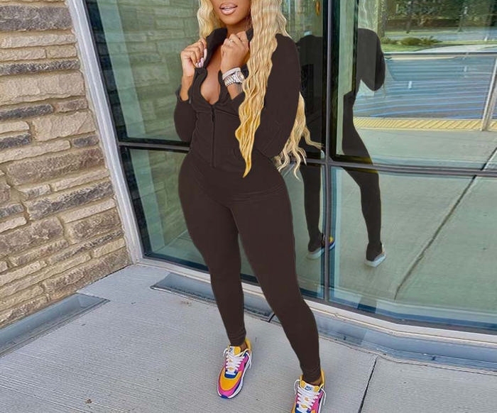 (Real Image)2022 Styles Women Sexy Spring&Winter TikTok&Instagram Styles Front Zipper Two Piece SuitSKU: #TP005-2