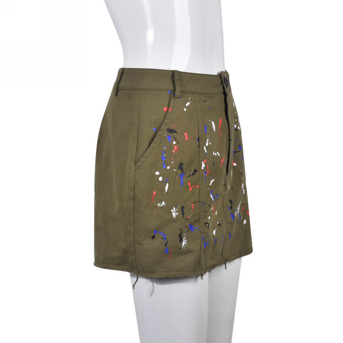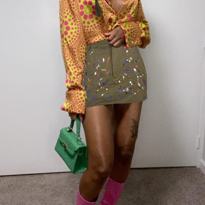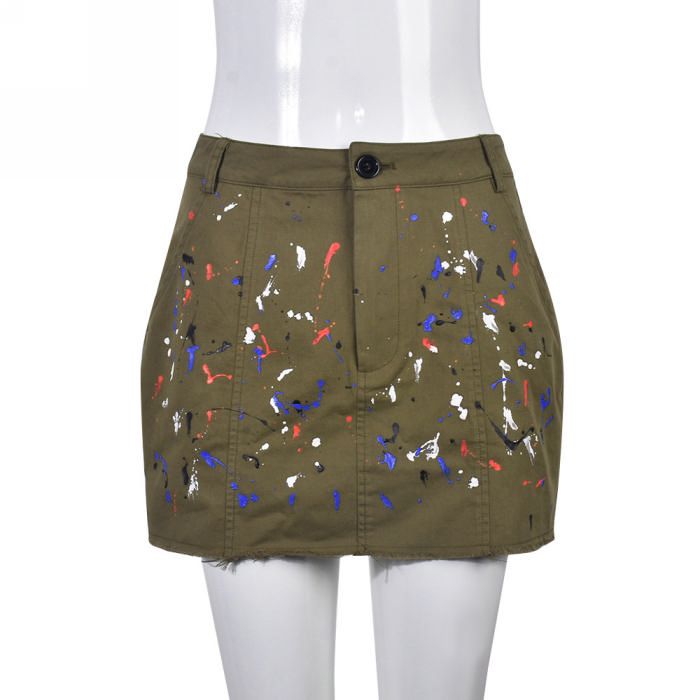 (Real Image)2022 Styles Women Sexy Spring&Winter TikTok&Instagram Styles Green Graffiti SkirtsSKU: #CF75032-1