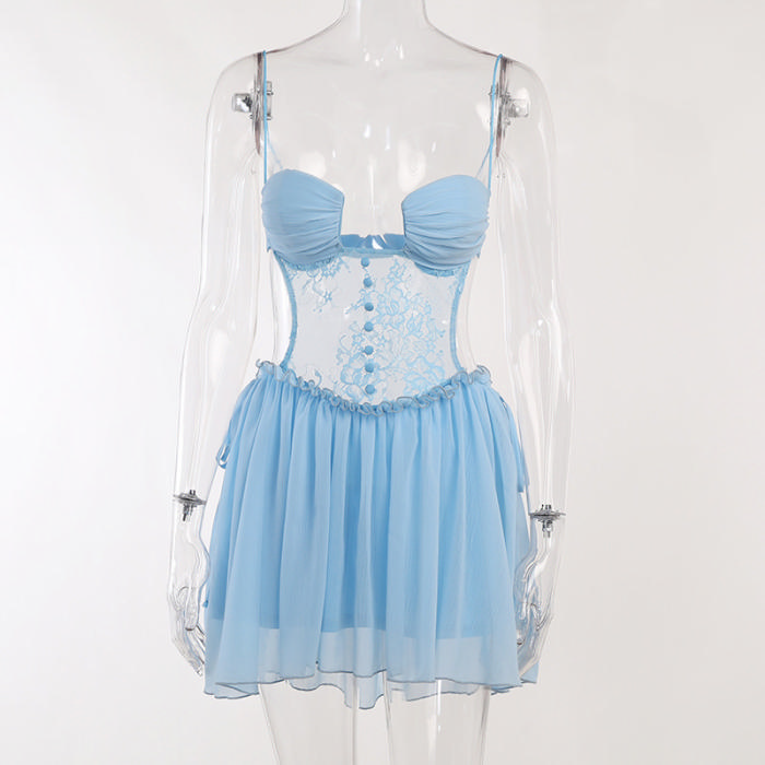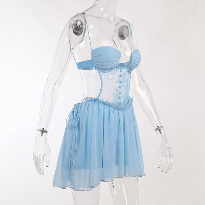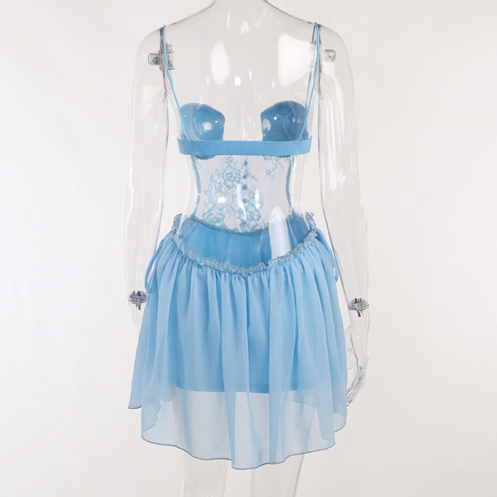 (Real Image)2022 Styles Women Sexy Spring&Winter TikTok&Instagram Styles Lace Mesh Mini DressSKU: #XF92698-1