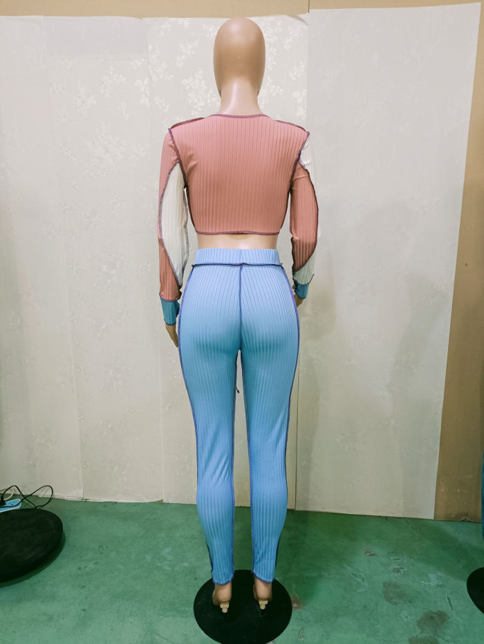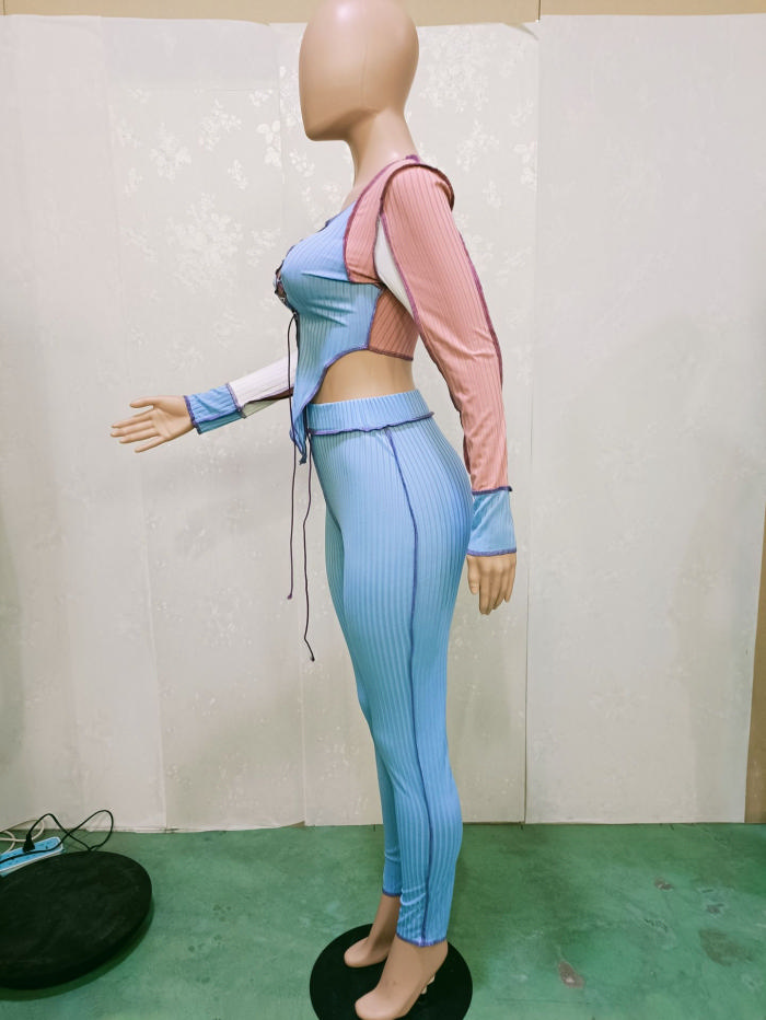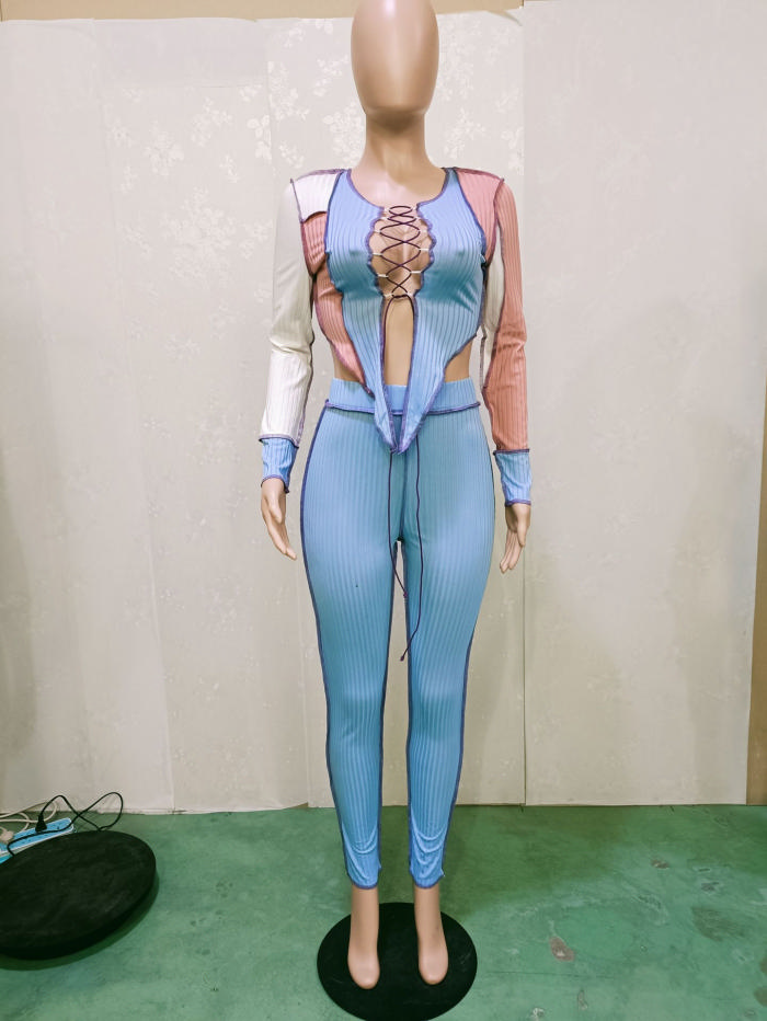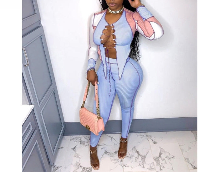 (Real Image)2022 Styles Women Sexy Spring&Winter TikTok&Instagram Styles Lace Up Contrast Color Two Piece SuitSKU: #TP007-1
