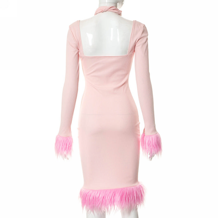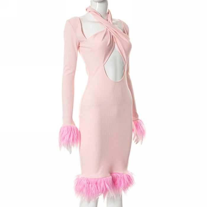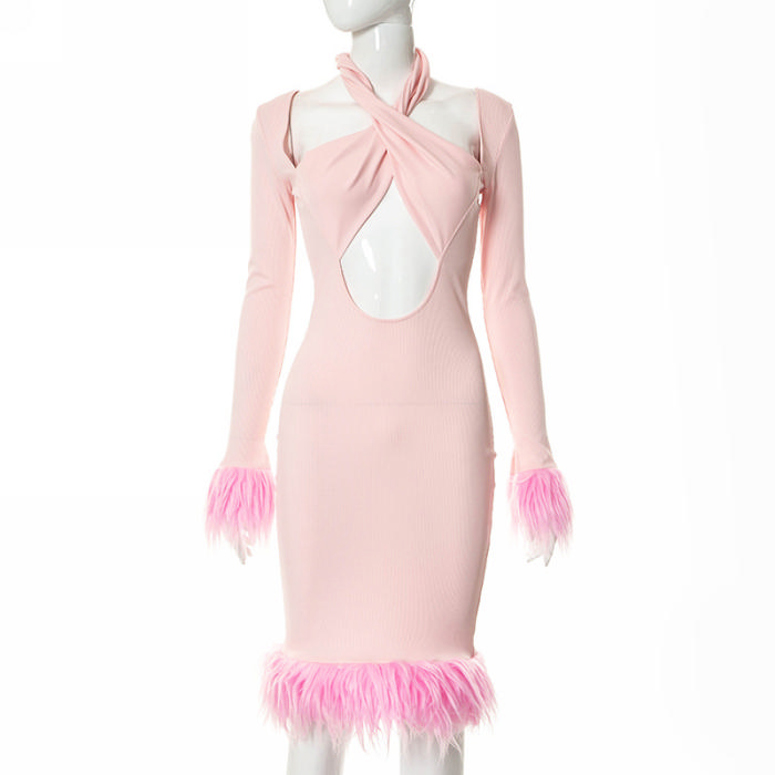 (Real Image)2022 Styles Women Sexy Spring&Winter TikTok&Instagram Styles Long Sleeve Tassels Midi DressSKU: #CF80022-1