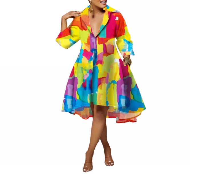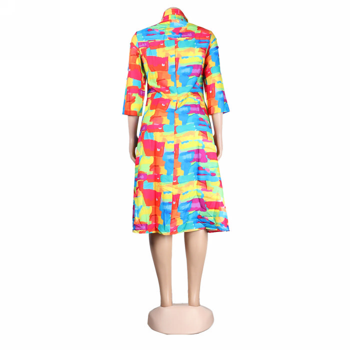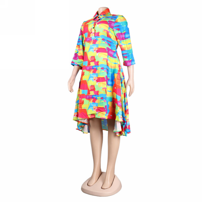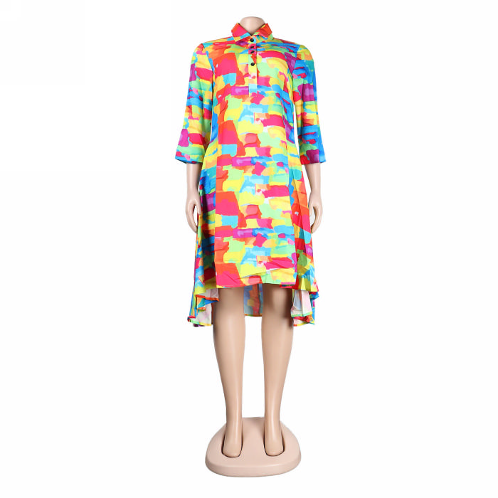 (Real Image)2022 Styles Women Sexy Spring&Winter TikTok&Instagram Styles Loose Print Front Button Hem Midi DressSKU: #XF27293-7
