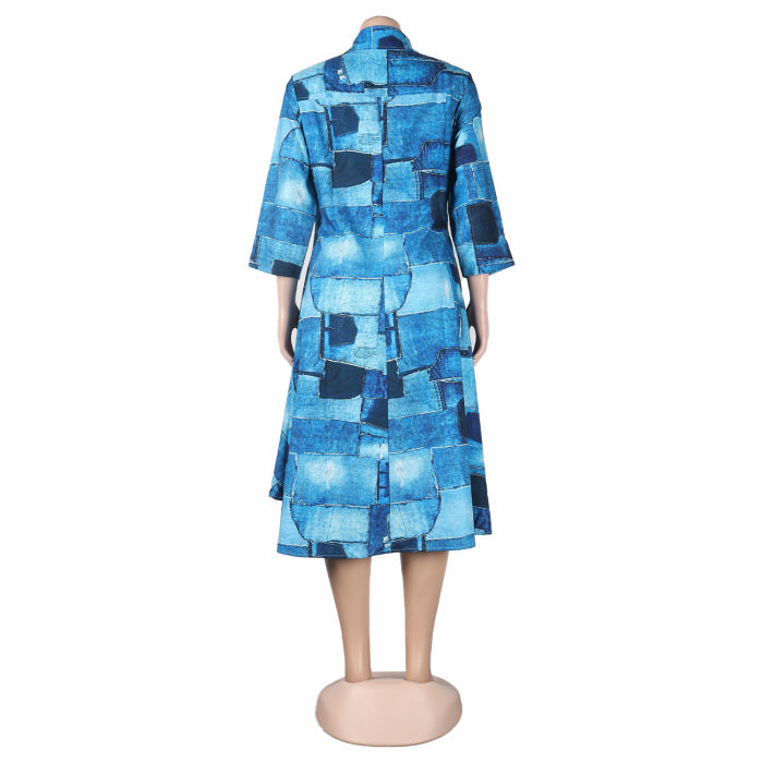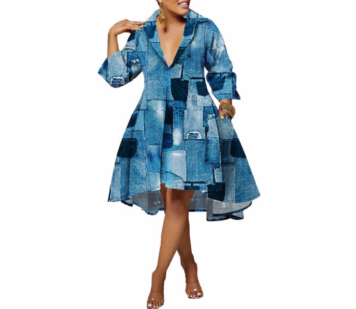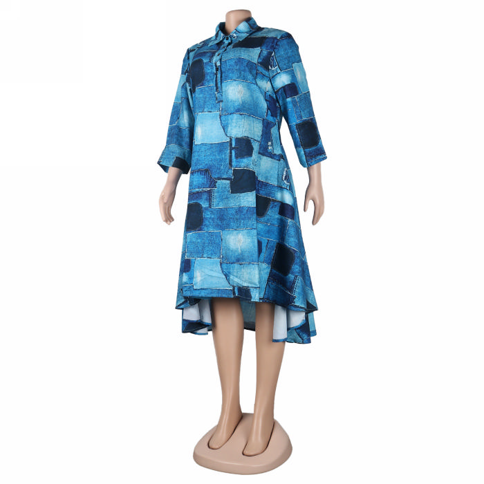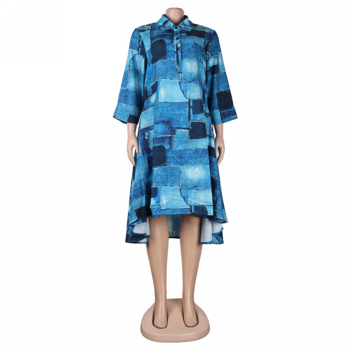 (Real Image)2022 Styles Women Sexy Spring&Winter TikTok&Instagram Styles Loose Print Front Button Hem Midi DressSKU: #XF27293-5