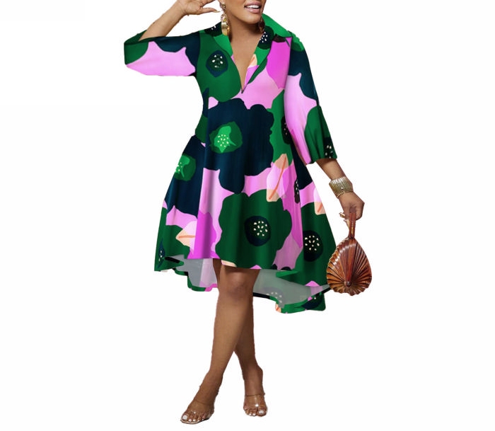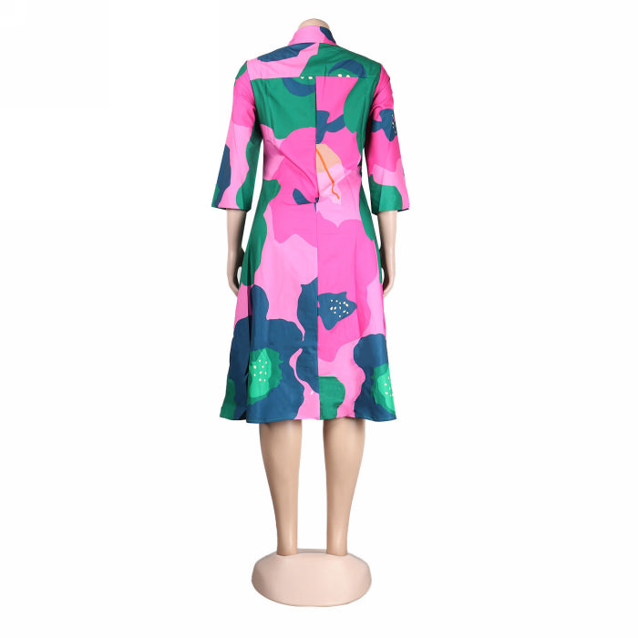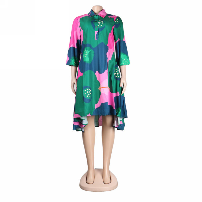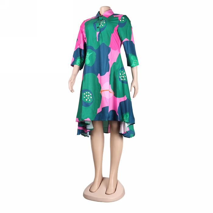 (Real Image)2022 Styles Women Sexy Spring&Winter TikTok&Instagram Styles Loose Print Front Button Hem Midi DressSKU: #XF27293-2