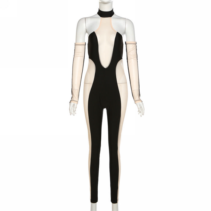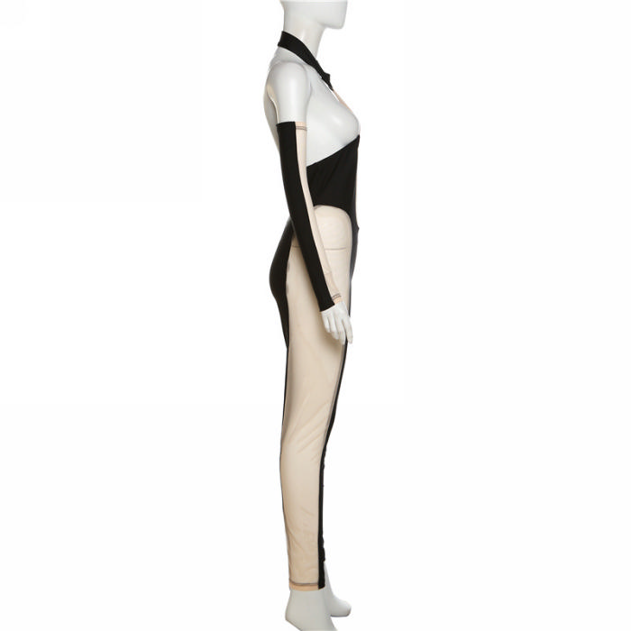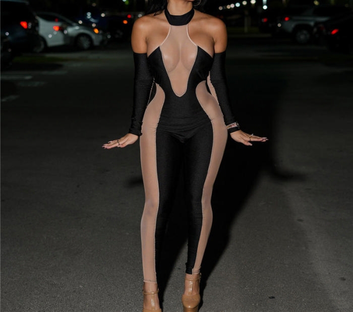 (Real Image)2022 Styles Women Sexy Spring&Winter TikTok&Instagram Styles Mesh Contrast Color JumpsuitSKU: #CF48942-1