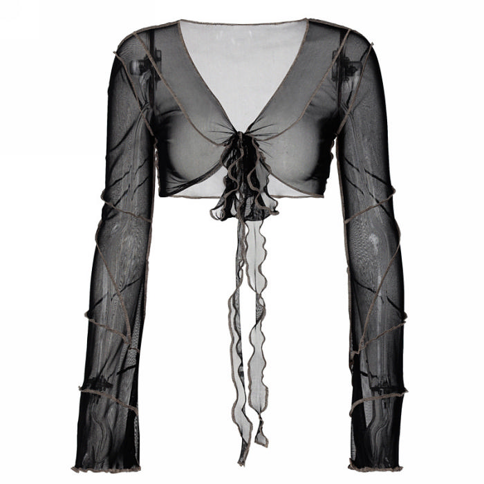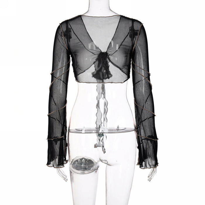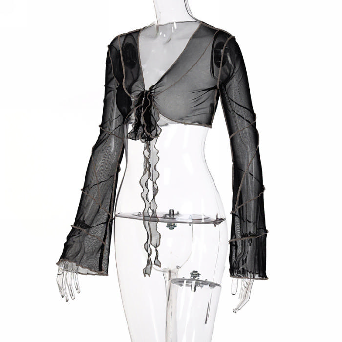 (Real Image)2022 Styles Women Sexy Spring&Winter TikTok&Instagram Styles Mesh Long Sleeve Tank TopsSKU: #OEM5818-1