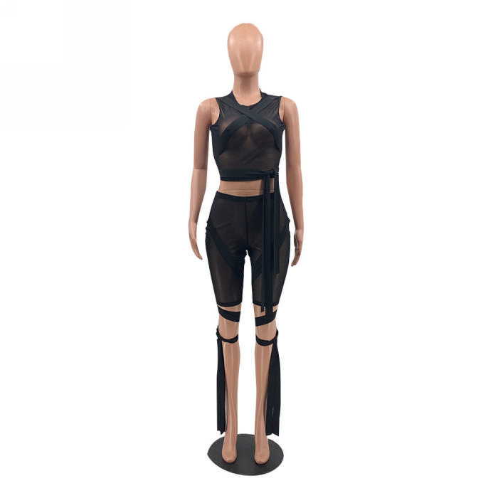 (Real Image)2022 Styles Women Sexy Spring&Winter TikTok&Instagram Styles Mesh Short Two Piece SuitSKU: #TP027-3