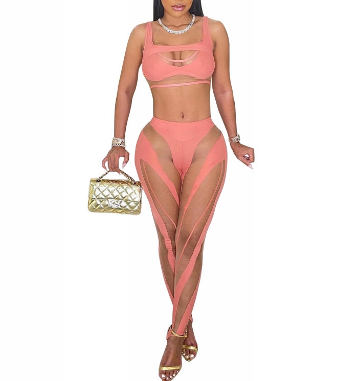 (Real Image)2022 Styles Women Sexy Spring&Winter TikTok&Instagram Styles Mesh Two Piece SuitSKU: #TP025-1