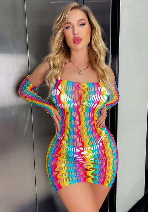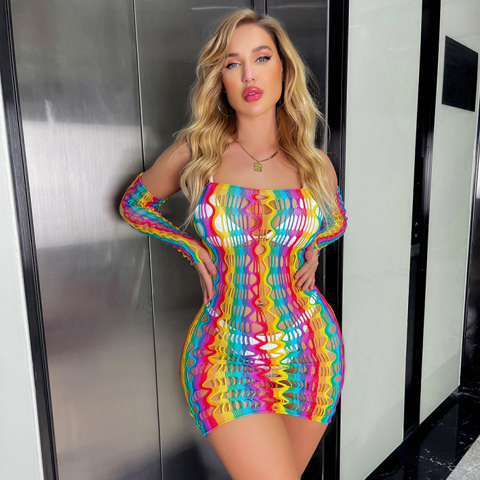 (Real Image)2022 Styles Women Sexy Spring&Winter TikTok&Instagram Styles Net Colorful Mini DressSKU: #CF78020-1