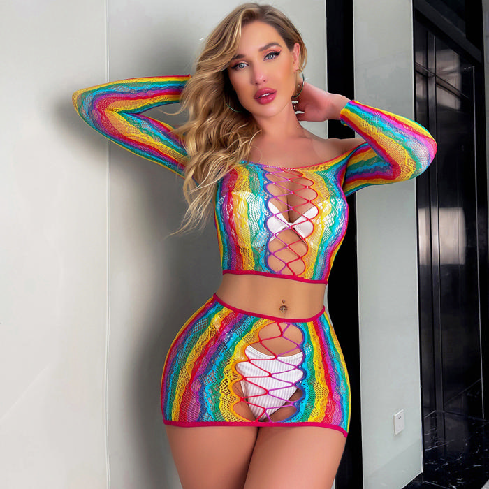 (Real Image)2022 Styles Women Sexy Spring&Winter TikTok&Instagram Styles Net Colorful Two Piece DressSKU: #CF78018-1