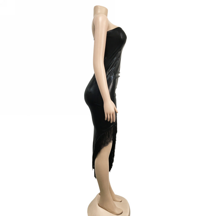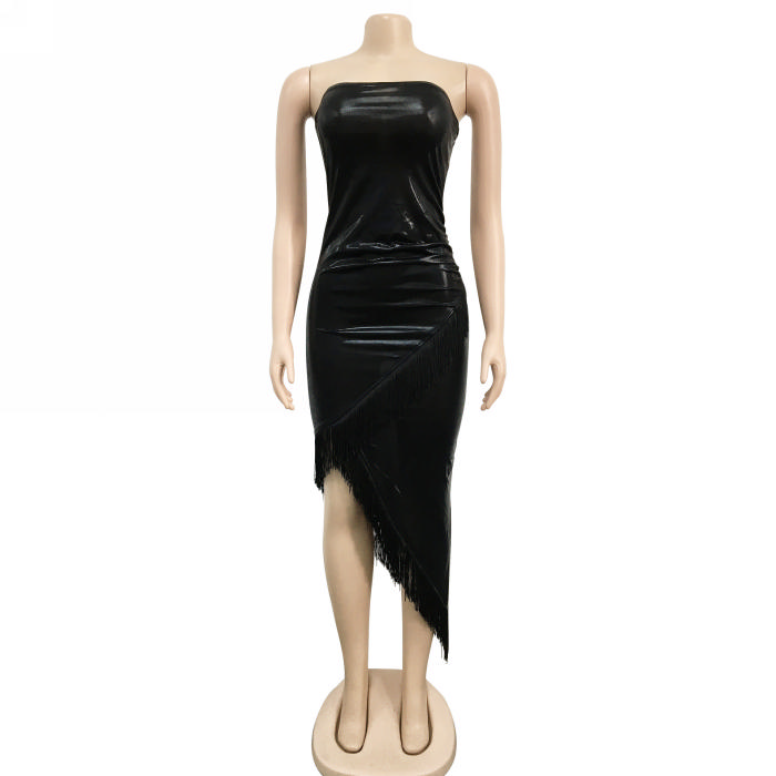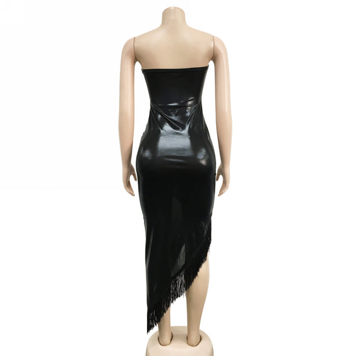 (Real Image)2022 Styles Women Sexy Spring&Winter TikTok&Instagram Styles Off Shoulder PU Maxi DressSKU: #CF79011-1