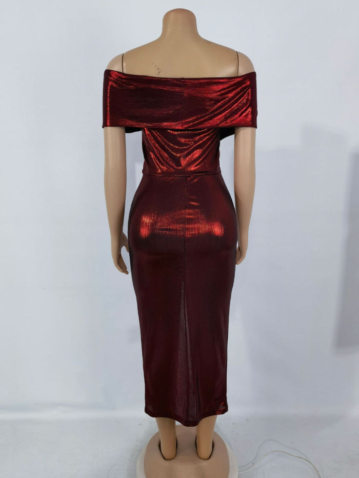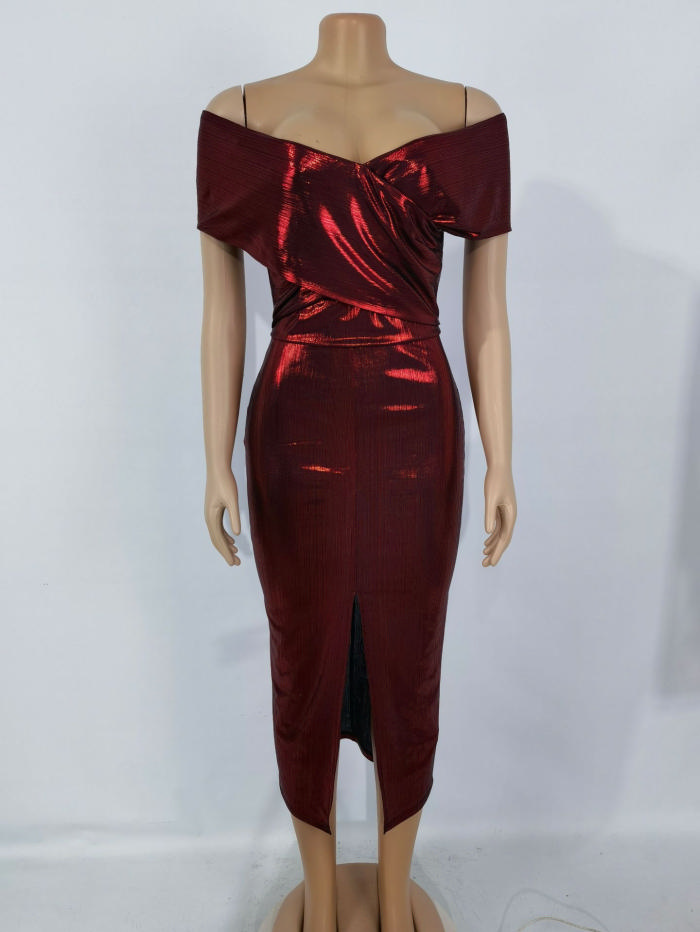 (Real Image)2022 Styles Women Sexy Spring&Winter TikTok&Instagram Styles Off Shoulder Split Midi DressSKU: #CF03017-1