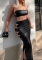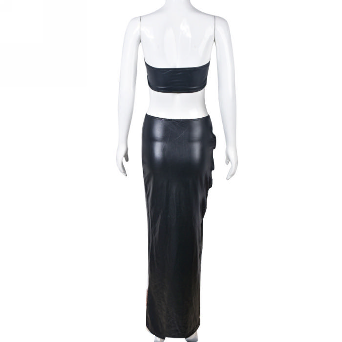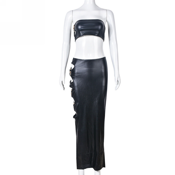 (Real Image)2022 Styles Women Sexy Spring&Winter TikTok&Instagram Styles PU Black Cut Out Maxi DressSKU: #CF75040-1