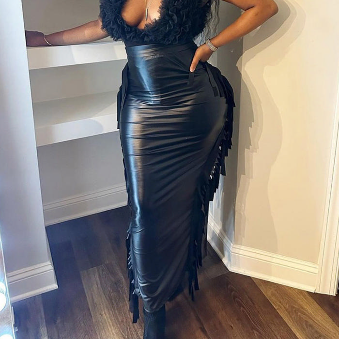 (Real Image)2022 Styles Women Sexy Spring&Winter TikTok&Instagram Styles PU Double Tassel SkirtsSKU: #CF59385-1