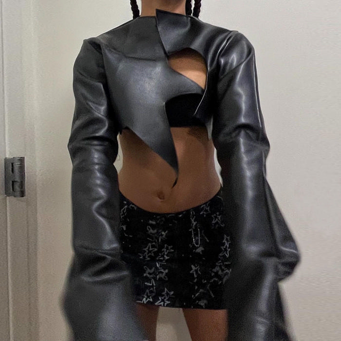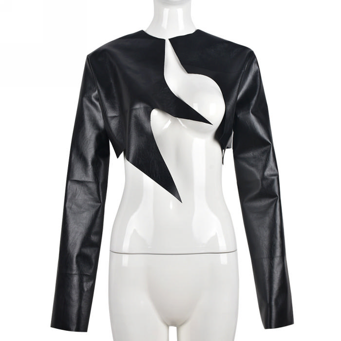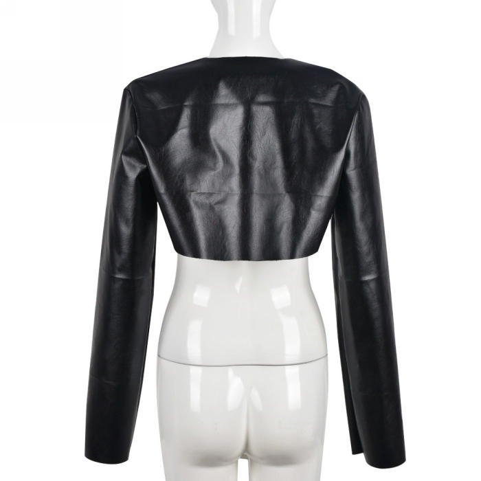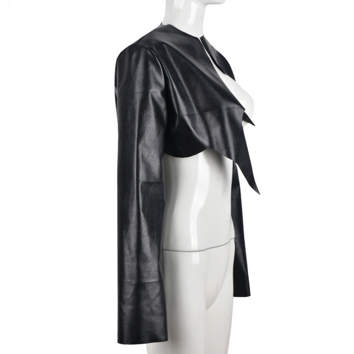 (Real Image)2022 Styles Women Sexy Spring&Winter TikTok&Instagram Styles PU Irregular Open CoatsSKU: #CF59370-1