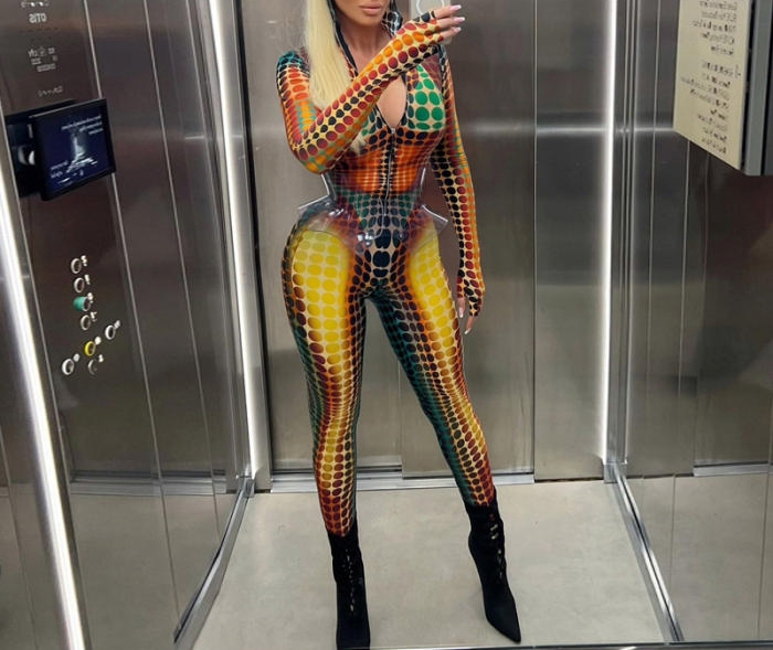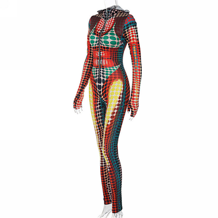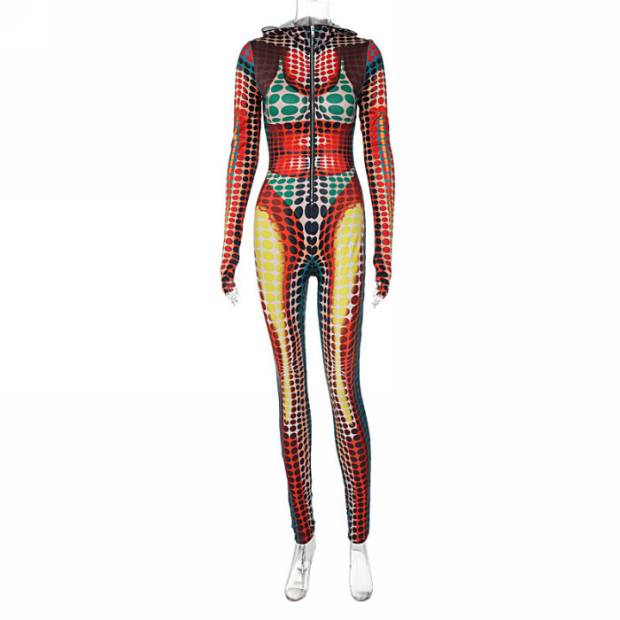 (Real Image)2022 Styles Women Sexy Spring&Winter TikTok&Instagram Styles Print Hoodie Long Sleeve JumpsuitSKU: #CF81035-1