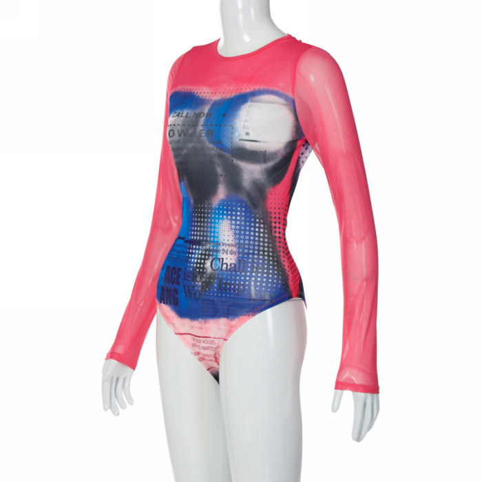 (Real Image)2022 Styles Women Sexy Spring&Winter TikTok&Instagram Styles Print Long Sleeve BodysuitSKU: #OM354-1