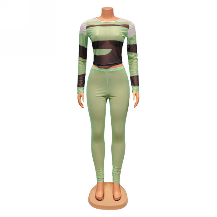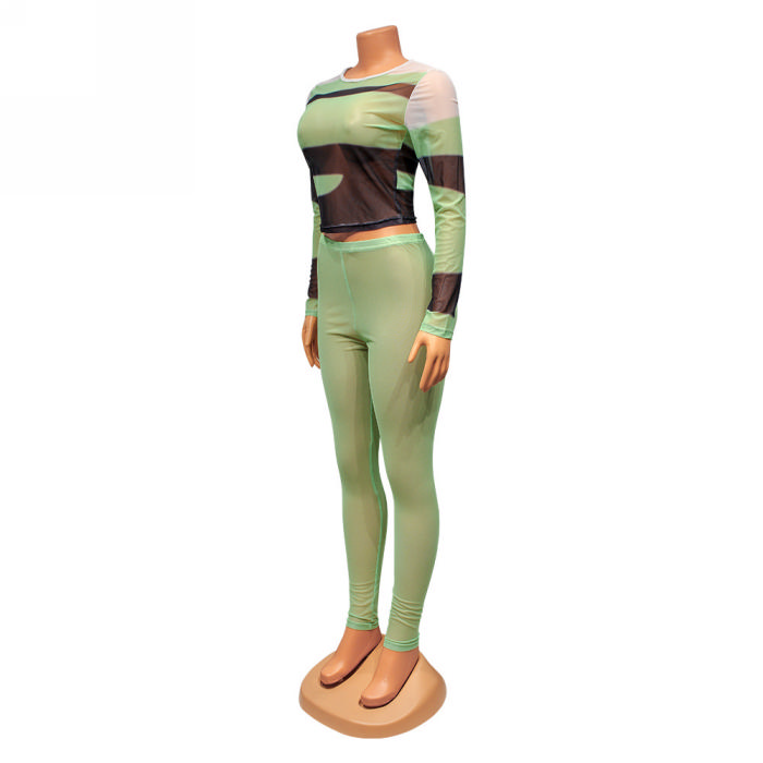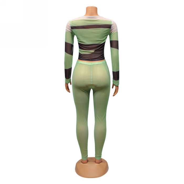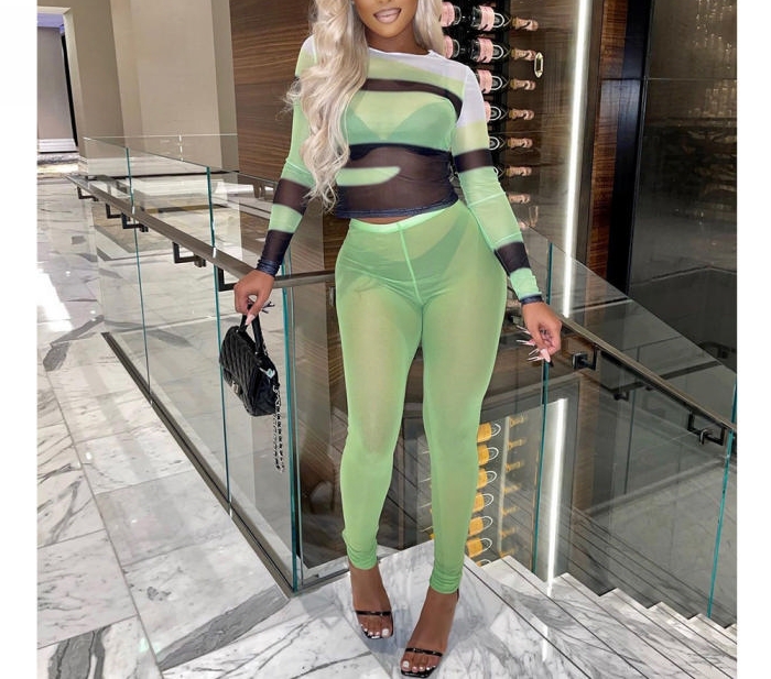 (Real Image)2022 Styles Women Sexy Spring&Winter TikTok&Instagram Styles Print Mesh Contrast Color Two Piece SuitSKU: #TP002-1