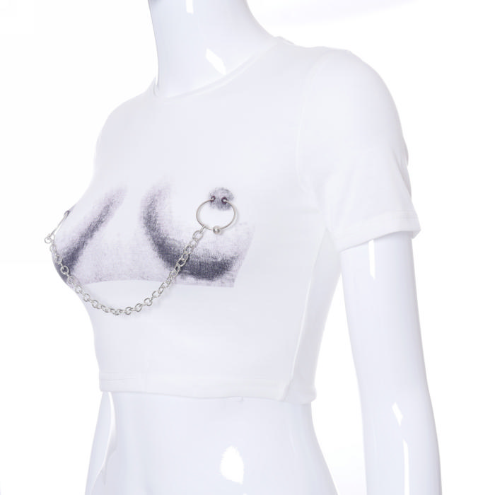 (Real Image)2022 Styles Women Sexy Spring&Winter TikTok&Instagram Styles Print Short Sleeve TeeSKU: #CF80006-2