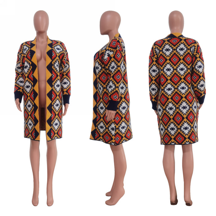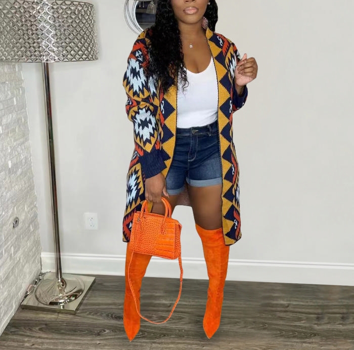 (Real Image)2022 Styles Women Sexy Spring&Winter TikTok&Instagram Styles Print Sweater Open CoatSKU: #XF85053-1