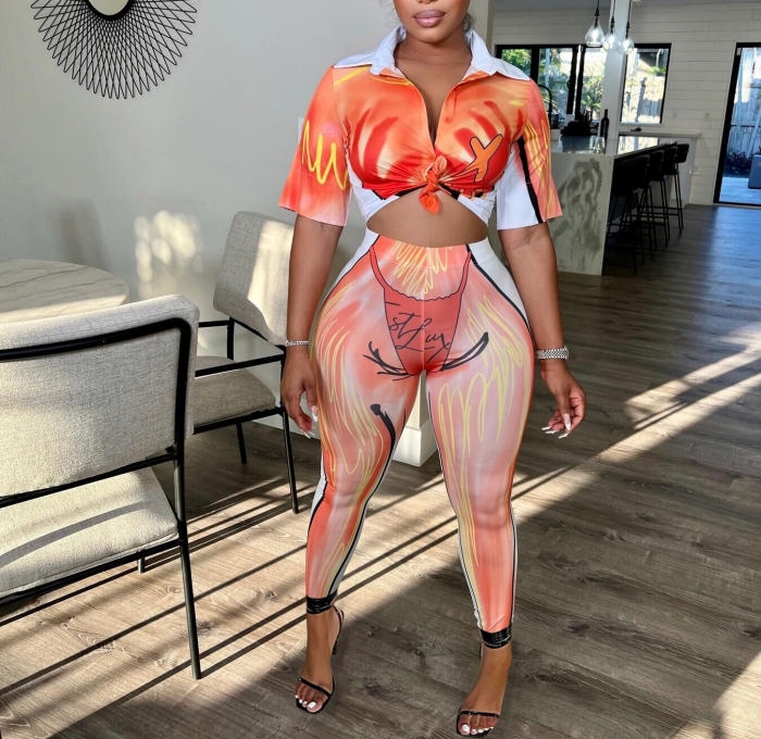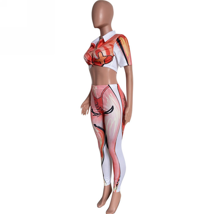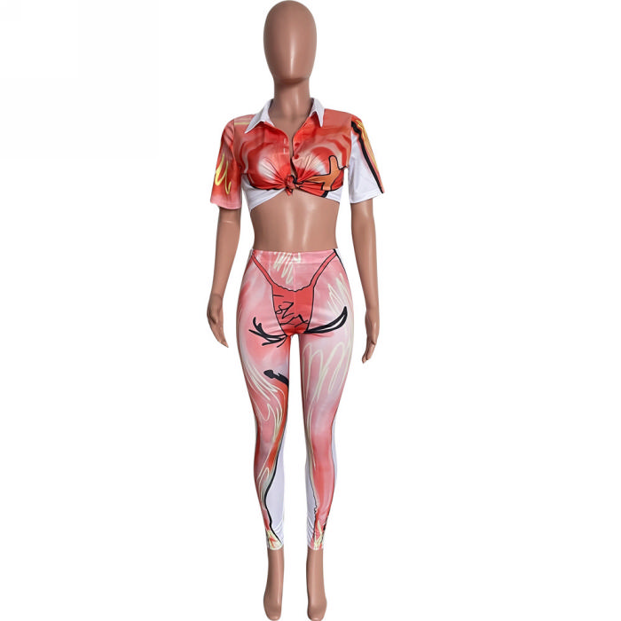 (Real Image)2022 Styles Women Sexy Spring&Winter TikTok&Instagram Styles Print Two Piece SuitSKU: #TP004-1