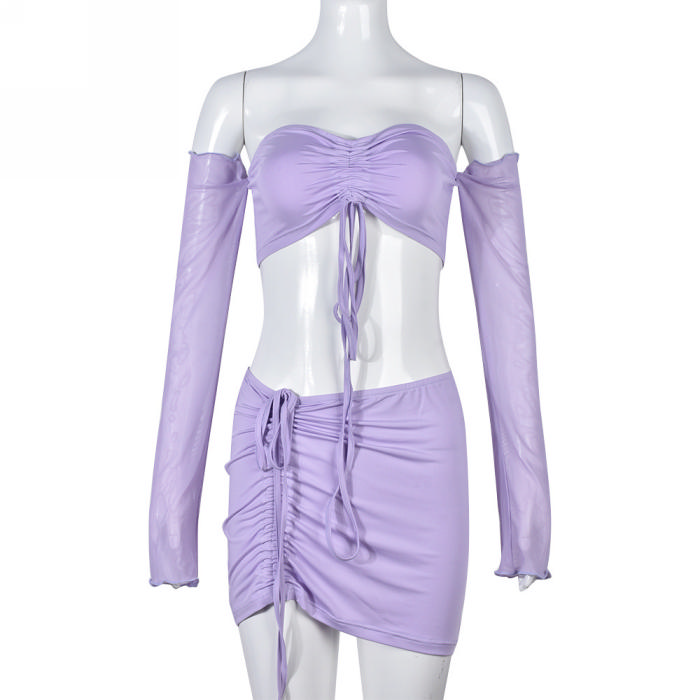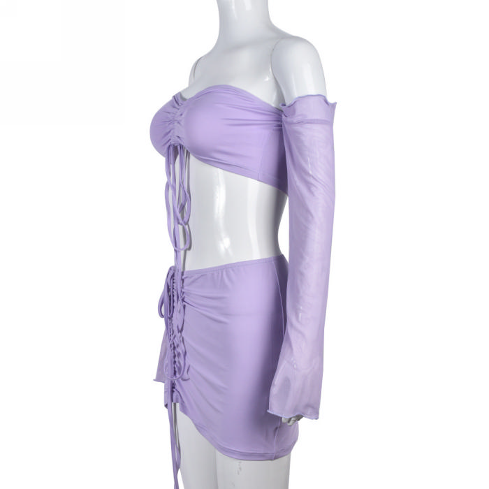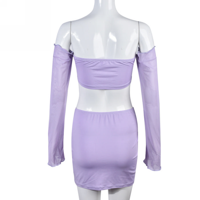 (Real Image)2022 Styles Women Sexy Spring&Winter TikTok&Instagram Styles Purple Two Piece DressSKU: #CF59387-1