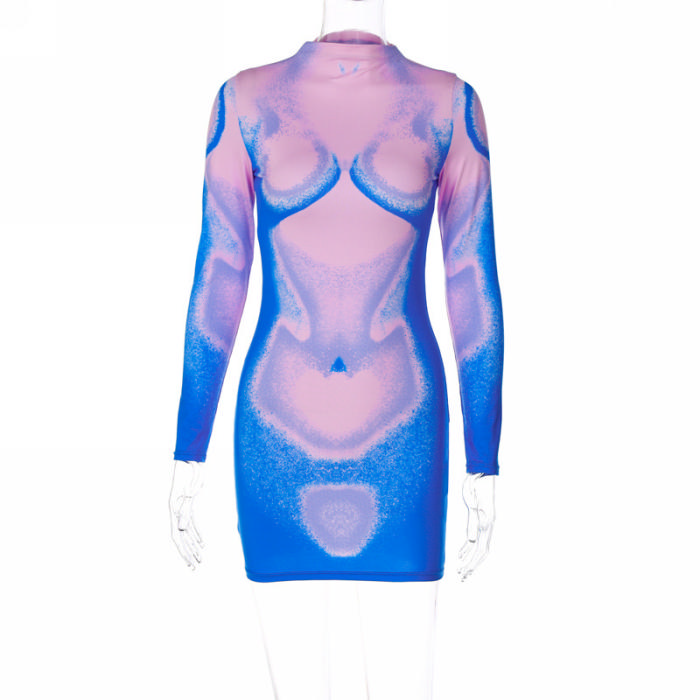 (Real Image)2022 Styles Women Sexy Spring&Winter TikTok&Instagram Styles Round Neck Print Long Sleeve Mini DressSKU: #OM351-1