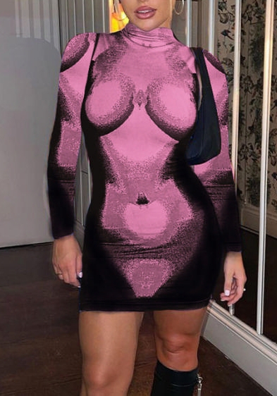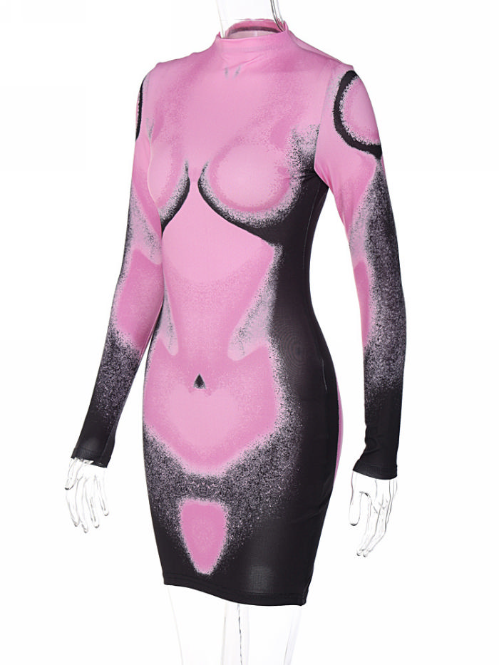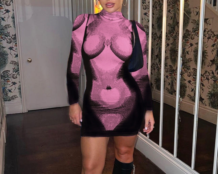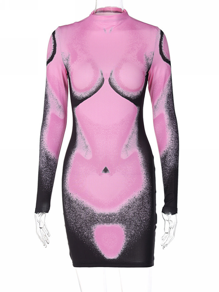 (Real Image)2022 Styles Women Sexy Spring&Winter TikTok&Instagram Styles Round Neck Print Long Sleeve Mini DressSKU: #OM351-2