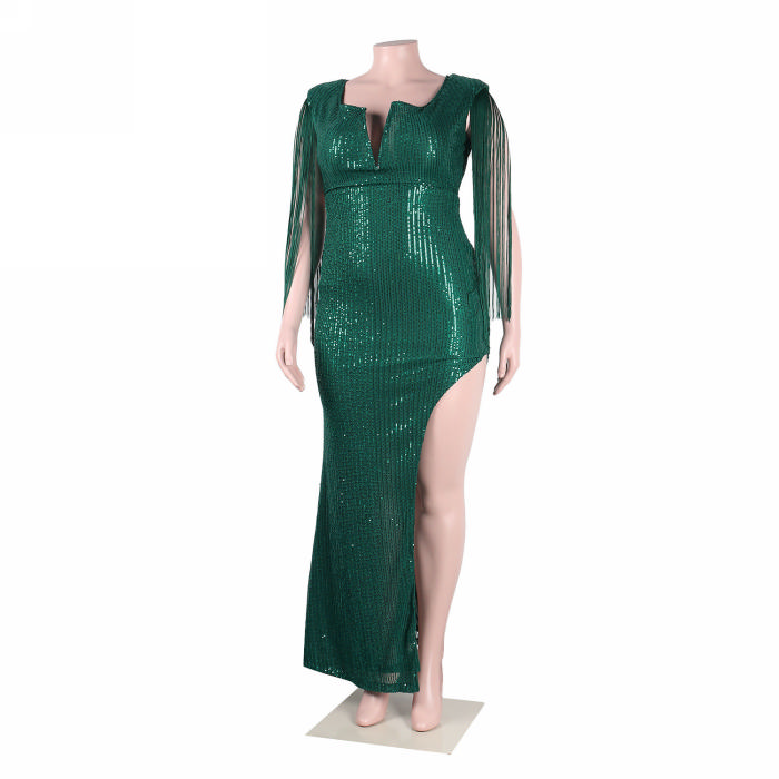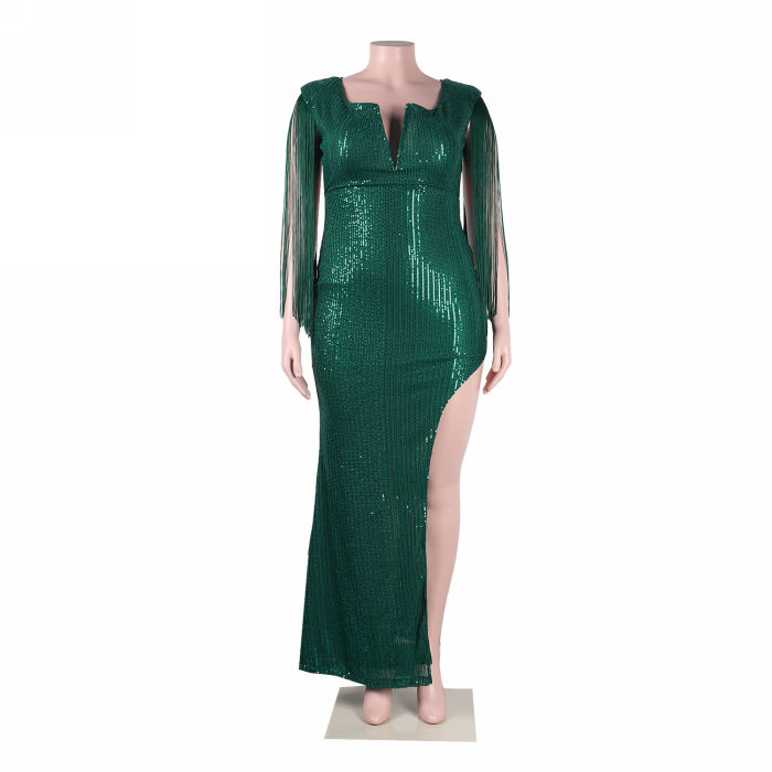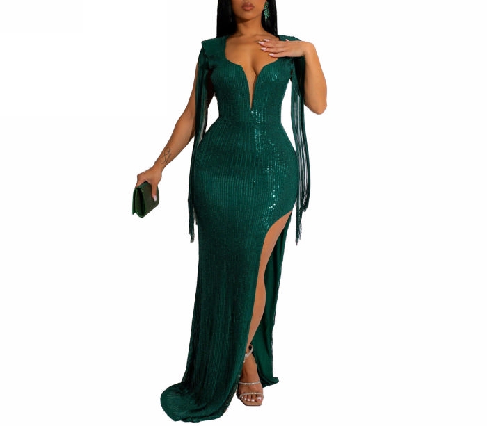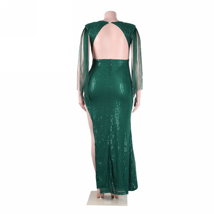 (Real Image)2022 Styles Women Sexy Spring&Winter TikTok&Instagram Styles Sequins Backless Deep V Neck Maxi DressSKU: #XF27297-2