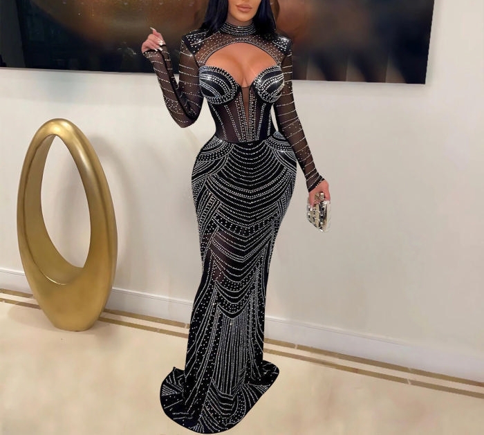 (Real Image)2022 Styles Women Sexy Spring&Winter TikTok&Instagram Styles Sequins Long Sleeve Maxi DressSKU: #XF27281-1