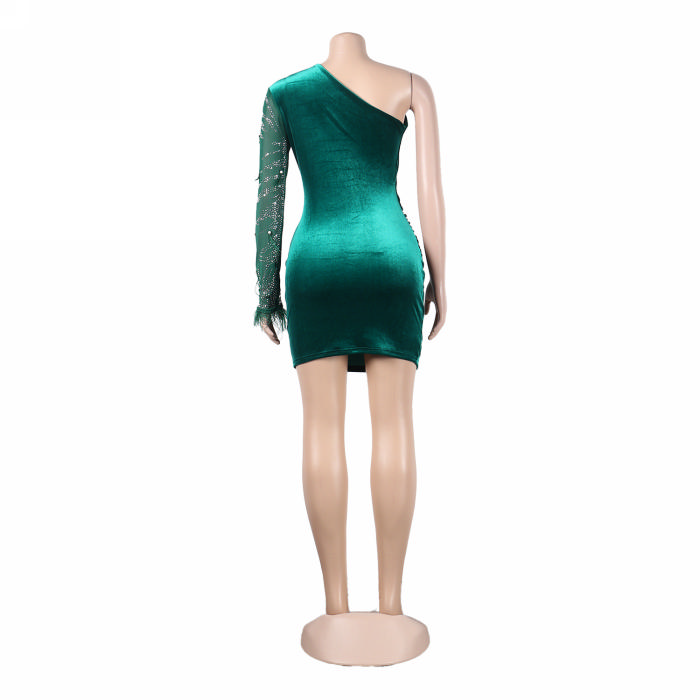 (Real Image)2022 Styles Women Sexy Spring&Winter TikTok&Instagram Styles Sequins Single Long Sleeve Mini DressSKU: #XF27296-3
