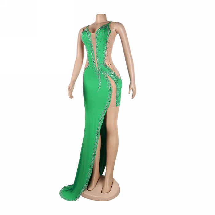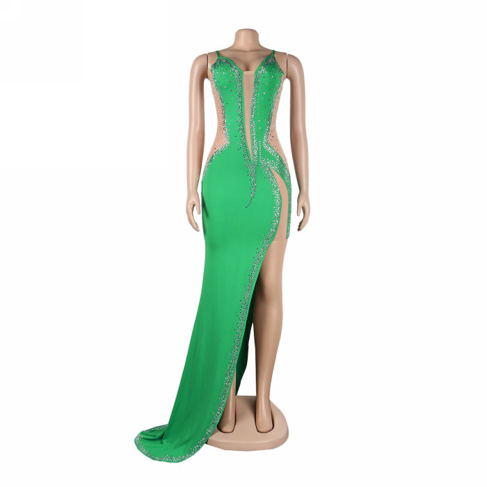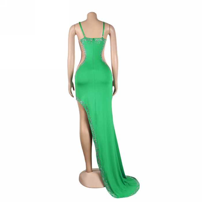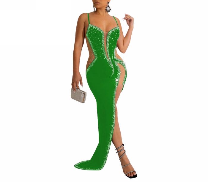 (Real Image)2022 Styles Women Sexy Spring&Winter TikTok&Instagram Styles Sequins Strap High Split Maxi DressSKU: #XF27291-6