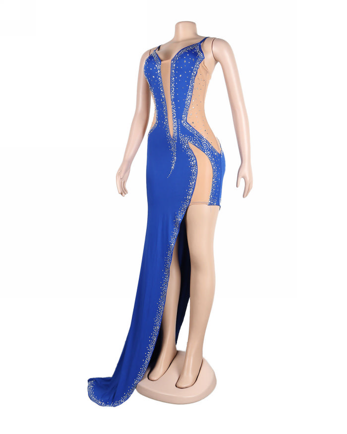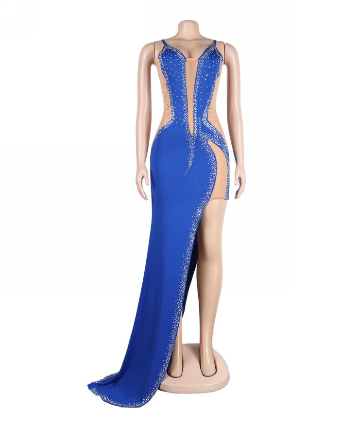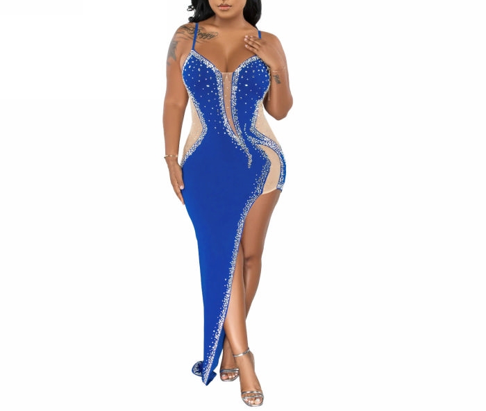 (Real Image)2022 Styles Women Sexy Spring&Winter TikTok&Instagram Styles Sequins Strap High Split Maxi DressSKU: #XF27291-4