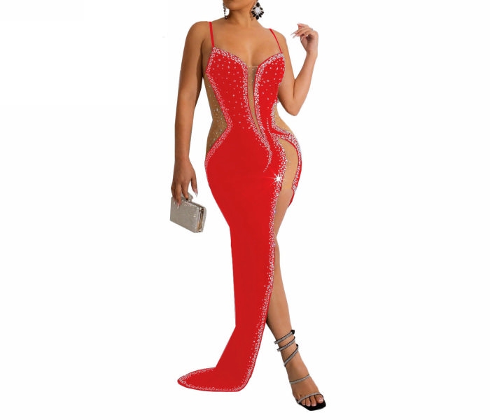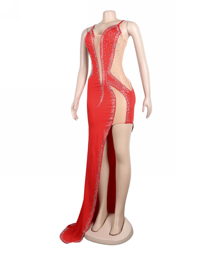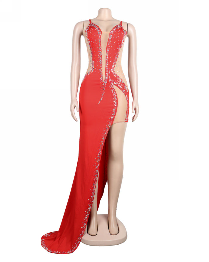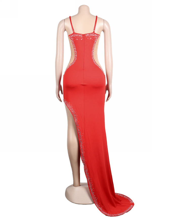 (Real Image)2022 Styles Women Sexy Spring&Winter TikTok&Instagram Styles Sequins Strap High Split Maxi DressSKU: #XF27291-3