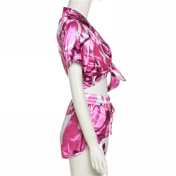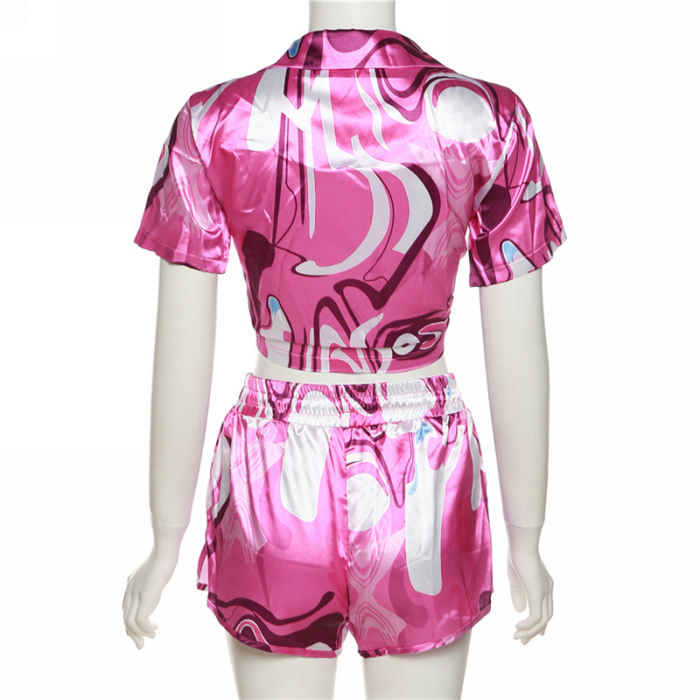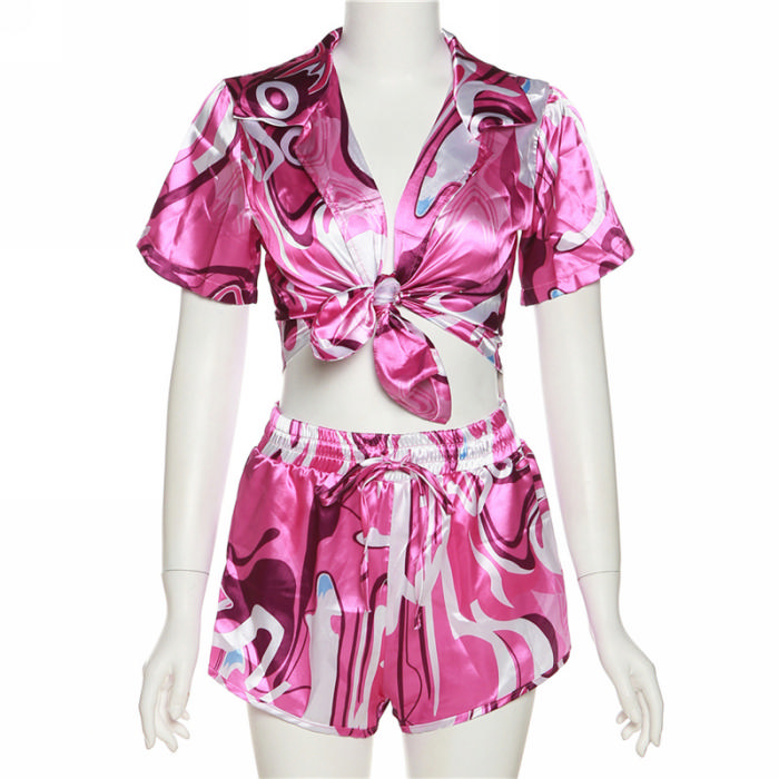 (Real Image)2022 Styles Women Sexy Spring&Winter TikTok&Instagram Styles Silk Print Short Two Piece SuitSKU: #TP010-1