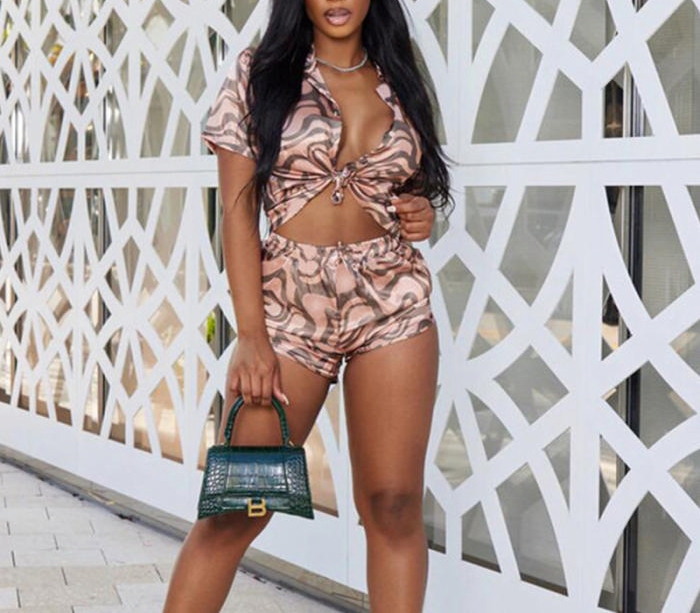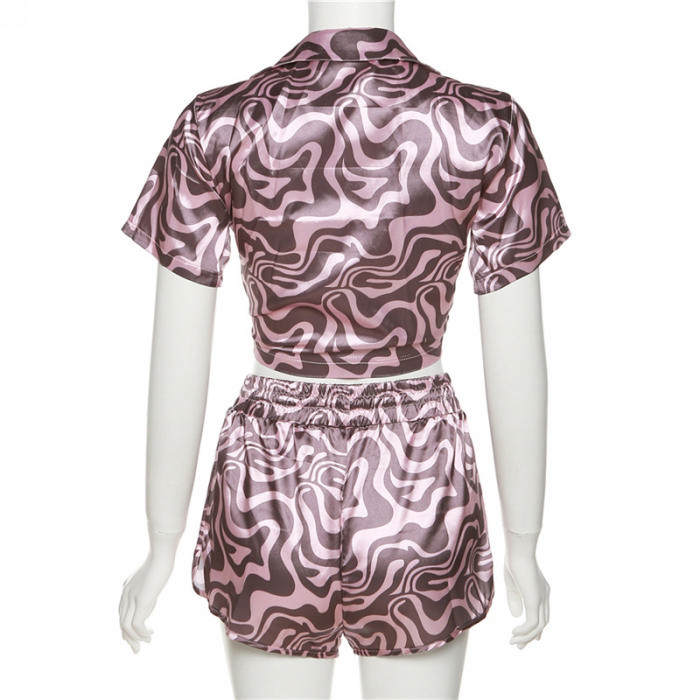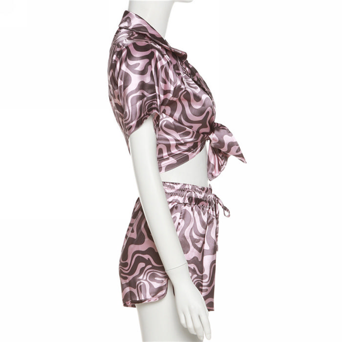 (Real Image)2022 Styles Women Sexy Spring&Winter TikTok&Instagram Styles Silk Print Short Two Piece SuitSKU: #TP010-5