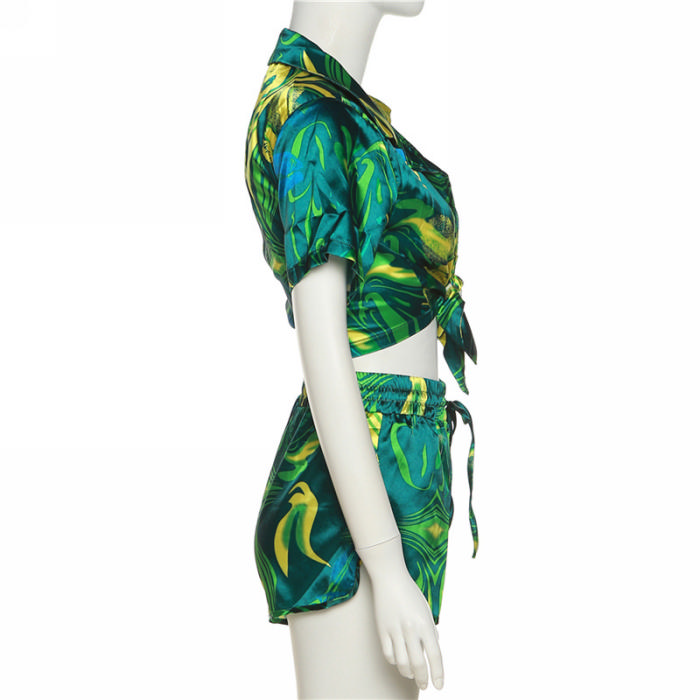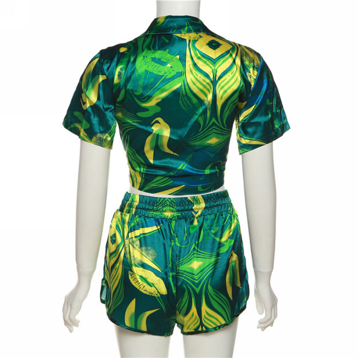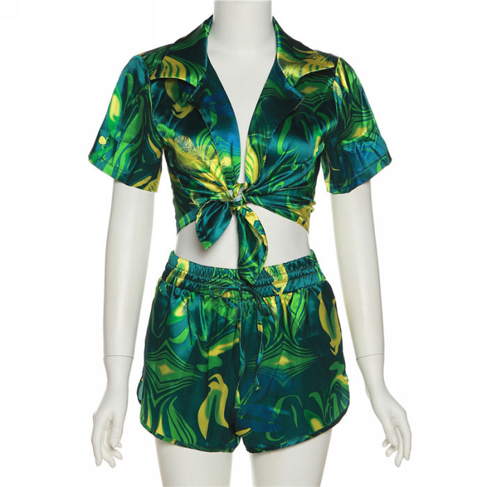 (Real Image)2022 Styles Women Sexy Spring&Winter TikTok&Instagram Styles Silk Print Short Two Piece SuitSKU: #TP010-4