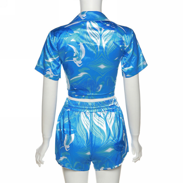 (Real Image)2022 Styles Women Sexy Spring&Winter TikTok&Instagram Styles Silk Print Short Two Piece SuitSKU: #TP010-3