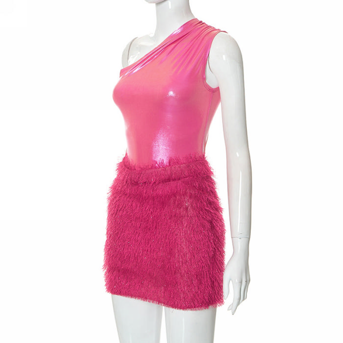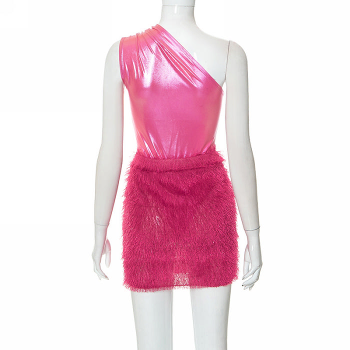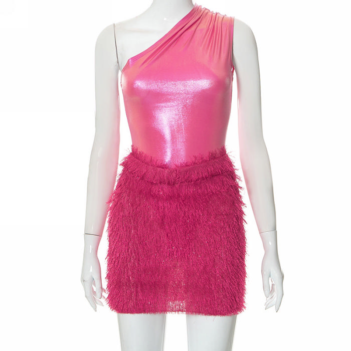 (Real Image)2022 Styles Women Sexy Spring&Winter TikTok&Instagram Styles Single Single Shoulder Two Piece Dress Bodysuit+SkirtsSKU: #CF80003-3