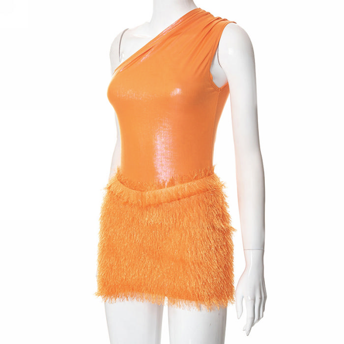 (Real Image)2022 Styles Women Sexy Spring&Winter TikTok&Instagram Styles Single Single Shoulder Two Piece Dress Bodysuit+SkirtsSKU: #CF80003-2