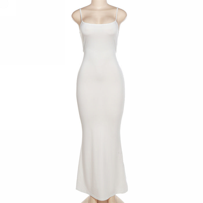 (Real Image)2022 Styles Women Sexy Spring&Winter TikTok&Instagram Styles Strap Solid Color Maxi DressSKU: #CF48939-1