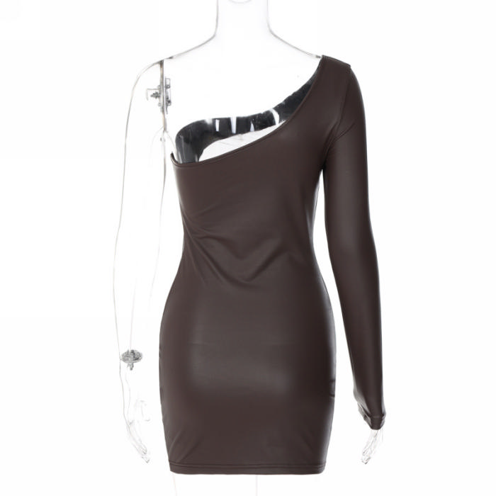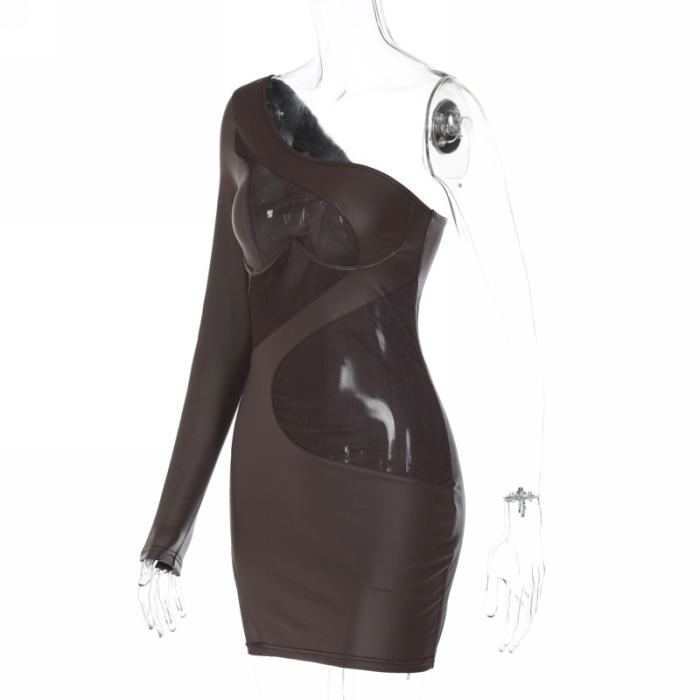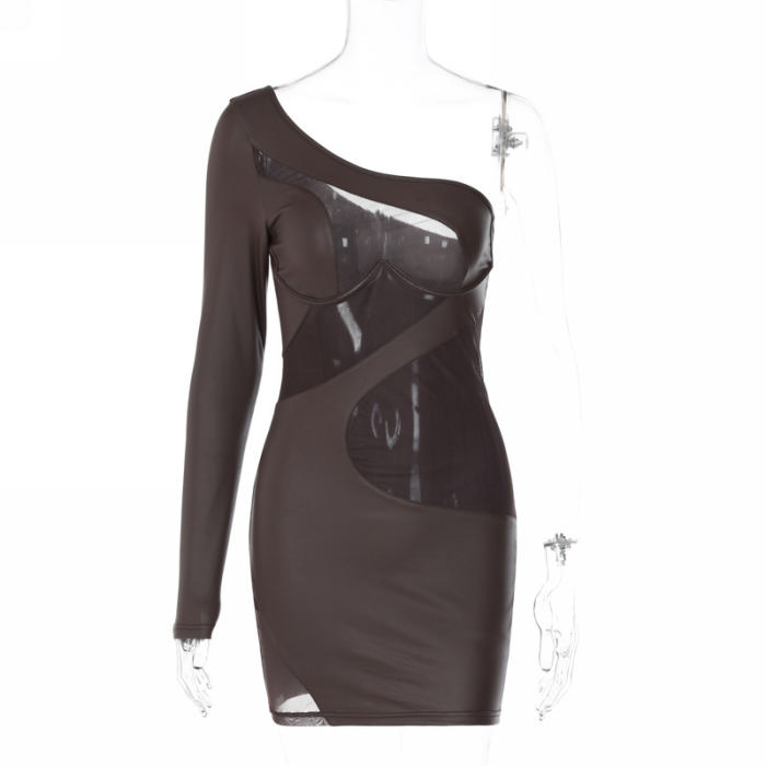 (Real Image)2022 Styles Women Sexy Spring&Winter TikTok&Instagram Styles TCoffee Cut Out Long Sleeve Mini DressSKU: #CF81027-1