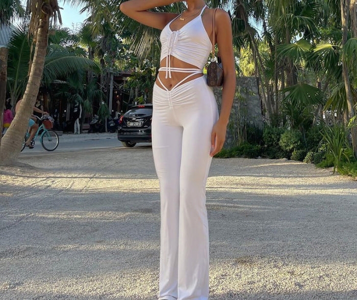 (Real Image)2022 Styles Women Sexy Spring&Winter TikTok&Instagram Styles Tie Ruffle Two Piece SuitSKU: #CF81005-1